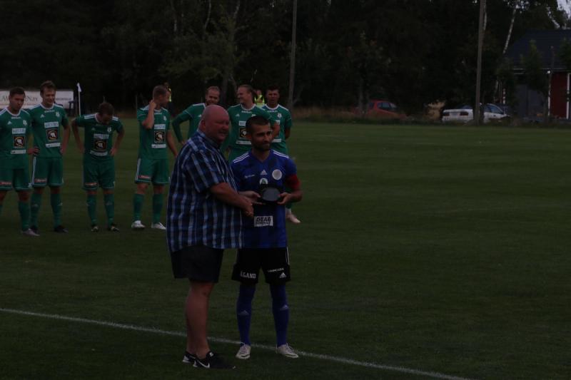 Innan matchen drar igång får Rezgar Amani en utmärkelse för att ha varit julis bästa spelare i division tre västra Finlands distrikt. Han säger att det är roligt, men att han inte är ett stort fan av individuella priser inom fotboll då det är en lagsport.