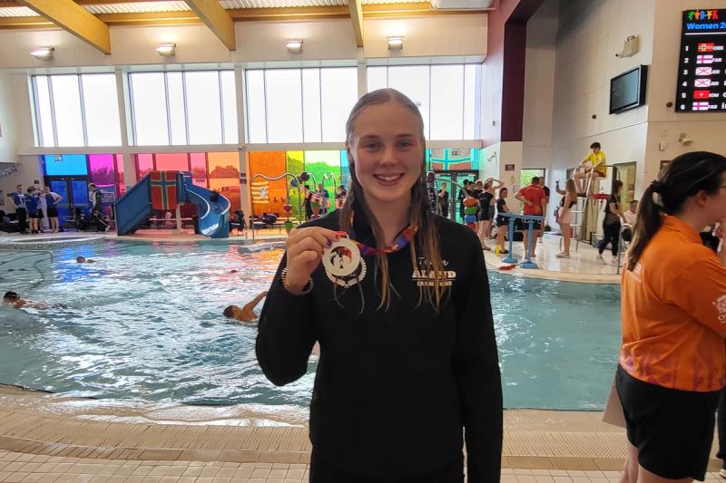 Den åländska simmaren Olivia Weuro hade den överlägset snabbaste kvaltiden på 100 meter frisim vid öspelen på Orkney i dag.